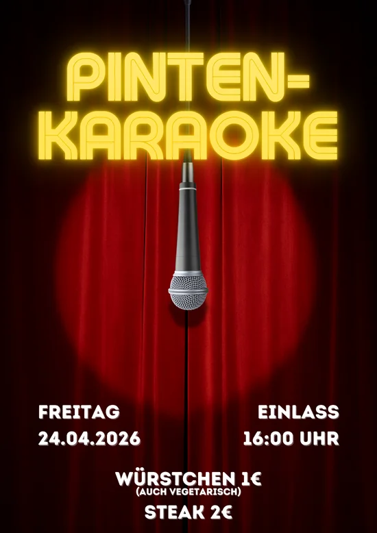 Am Freitag, dem 24.04.26 findet die Pinten-Karaoke-Disco statt.